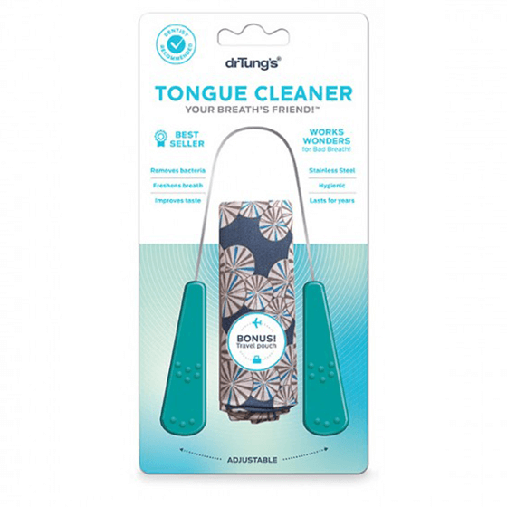 Deze tongreiniger is door Dr. Tung ontwikkeld en een van de bestverkopende met meer dan 1 miljoen verkochte exemplaren in de VS! Hij is gemaakt van roestvrijstaal omdat het ongevoelig is voor bacteriën, vriendelijker en zachter voor uw tong is dan plastic. Daarom eten mensen liever met zilver dan met plastic bestek!